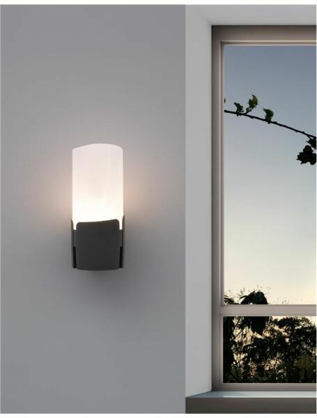 Nova Luce Pyro kültéri fali lámpa sötétszürke alumíniumból, fehér akril búrával. A csomagolás a fényforrást nem tartalmazza. IP54-ös védelemmel rendelkezik, azaz fröccsenő víz ellen védet minden irányból.
